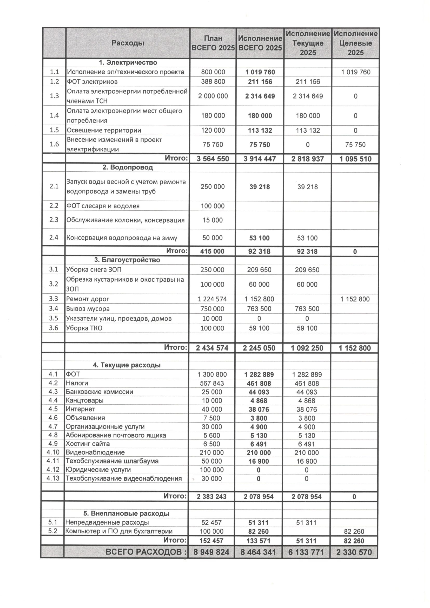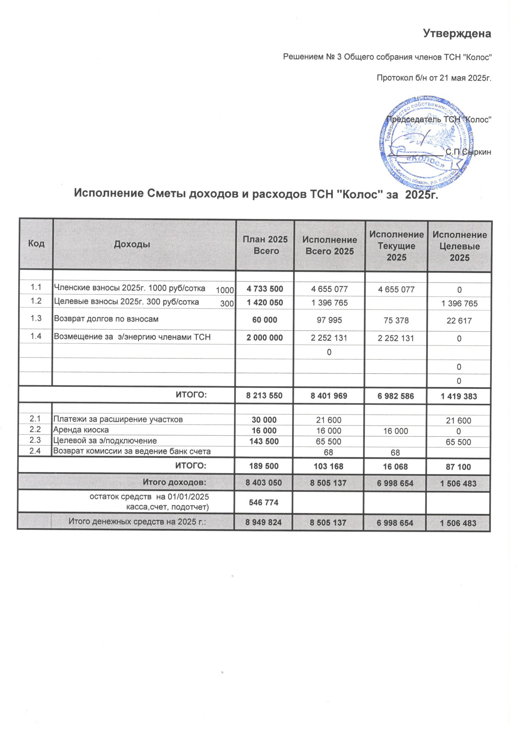 Исполнение сметы за 2025 год
